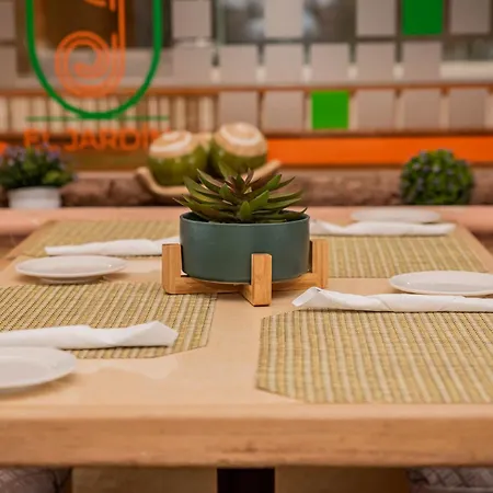 손님들이 요리를 즐기기 위해 Restaurante EL Jardin 레스토랑으로 초대됩니다.